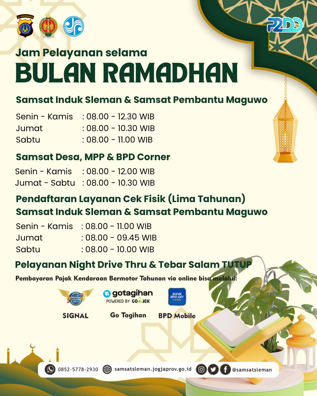 Jam Layanan Samsat Sleman Selama Bulan Ramadhan 1447 H